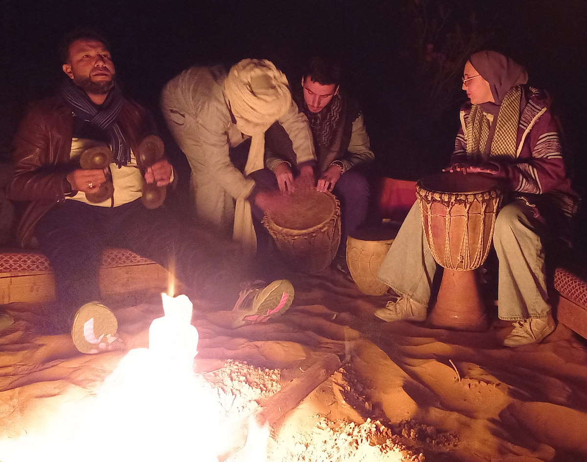 On Saturday we visit the village of Hassi Labied to learn about irrigation farming. We explore the saqiya and khettara, which are canals and tunnels that distribute water to community gardens. From there we head to the village of Khemlia for lunch and a taste of Gnawa music. In the afternoon we’ll head to Merzouga to begin a camel trek across the Erg Chebbi dunes to view the sunset. After sunset we head to a desert camp for dinner and a bonfire before returning to Rissani.